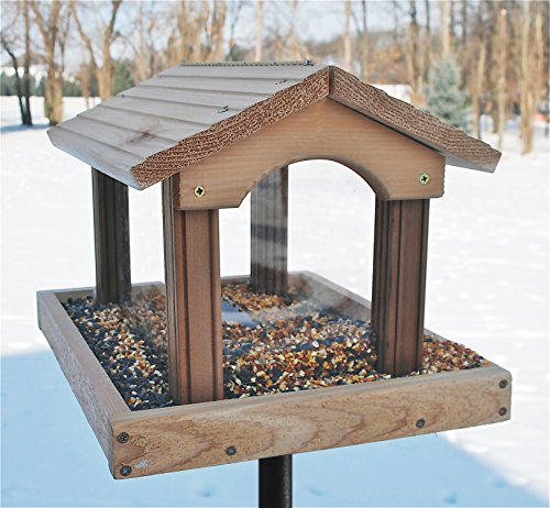 -. Binding : Lawn & Patio -. Brand : Woodlink -. EAN : 0715038397144 -. Feature : Constructed of re-forested, kiln dried, inland red cedar with chromate screws / Sturdy large ranch style feeder provides great bird visibility / Holds up to 11 pounds mixed seed / Roof is hinged for easy filling and cleaning -. IsAutographed : 0 -. Label : Kay Home Products -. Manufacturer : Kay Home Products -. Model : PRO4 -. MPN : PRO4 -. NumberOfItems : 1 -. PackageQuantity : 1 -. PartNumber : PRO4 -. ProductGroup : Lawn & Patio -. ProductTypeName : OUTDOOR_LIVING -. Publisher : Kay Home Products -. Size : 17.75" L x 13.25" W x 11.75" H -. Studio : Kay Home Products -. Title : Woodlink PRO4 Premier Cedar Bird Feeder -. UPC : 715038397144 The premier cedar feeder is able to withstand daily usage and provides practical features that birds will love. Feeding stations on both sides offer seed to a large number of birds at one time. This natural looking feeder is constructed of re-forested, kiln dried, inland red cedar with zinc chromate screws for long lasting durability. The anodized aluminum roof hinge opens easily and shuts securely and the perforated screen bottom removes for cleaning. Handcrafted in the USA.