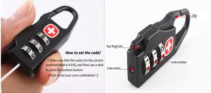 Swiss Gear 3 Digit Password Code Metal Combination Luggage Lock Padlock