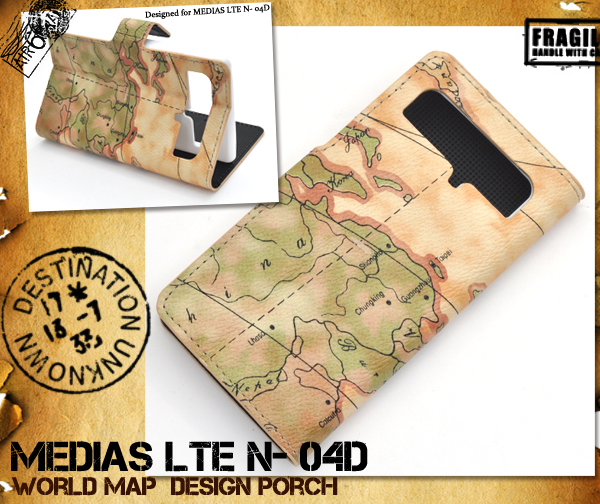 レトロな世界地図デザインがオシャレな、MEDIAS LTE N-04D用ケースポーチ!