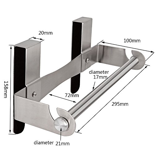 - Hasen Paper Towel Holder:11.6" L x 6.2" H x 3" W,perfect for the cabinet with the thickness of less than 20mm.This kitchen tissue holder is rustproof and durable due to the high premium brushed stainless steel 304. Keep shinning after a long-term use and doesn't bent easily. The arm that holds the paper towel is long enough, keep the towel floating well on the rod. And the width is 3 inch to fit the large rolls of paper towel perfectly.