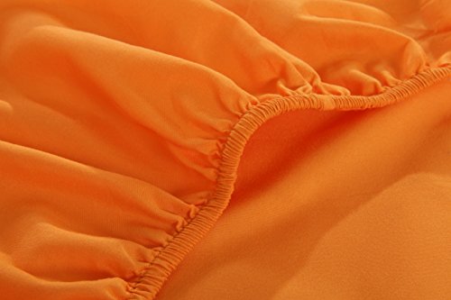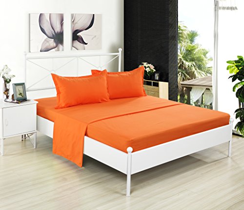 Kuality Brushed Microfiber Bedding 4pc, Wrinkle,Stain & Fade Resistant Easy Care Soft Solid Color Bed Sheet Set(1 Fitted Sheet, 1 Flat Sheet, 2 Pillow Cases/Shams), Full Size, Orange