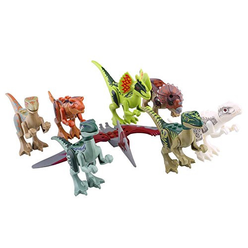 -. Feature : Size: approx: 4.3 * 3.5 * 1.6inch / Material: Plastic / Condition: 100% brand new and high quality / Great for Kids playing and studying or collectors / 8 different jurrasic park dinosaurs minifigures