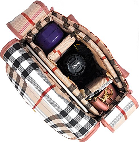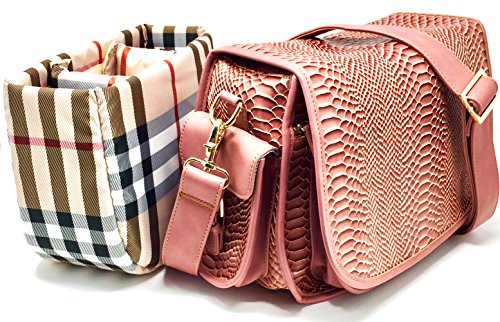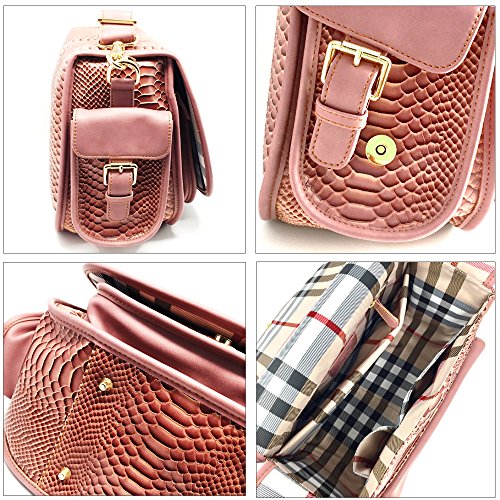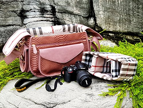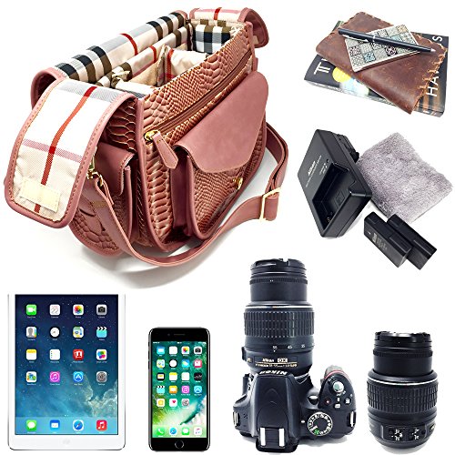 Purple Relic: Multipurpose Women's DSLR Camera Bag Canon Nikon Sony; Premium Textured Faux Leather Crocodile Skin; Padded Removable Insert; Saddle Handbag