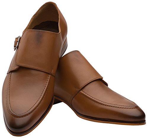 Product DescriptionHandcrafted Genuine Leather Single Monkstrap features Tan Calfskin Leather Uppers, Micro Suede Socks with Cushioned Insoles and Rich Tan Cow Leather Lining.0