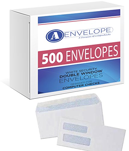 500 Double Window Security Gummed Check Envelopes - Compatible for QuickBooks