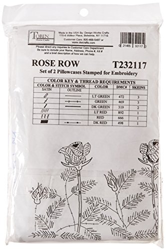 Tobin Stamped Pillowcase Pair Stamped Cross Stitch Kit for Embroidery, 20 by 30-Inch, Rose Row