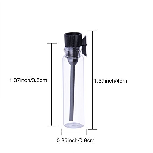Enslz 100PCS Perfume Samples Mini Bottles With Black Lid Empty Glass Vials Dropper Bottle for Travel and Party(1ml)