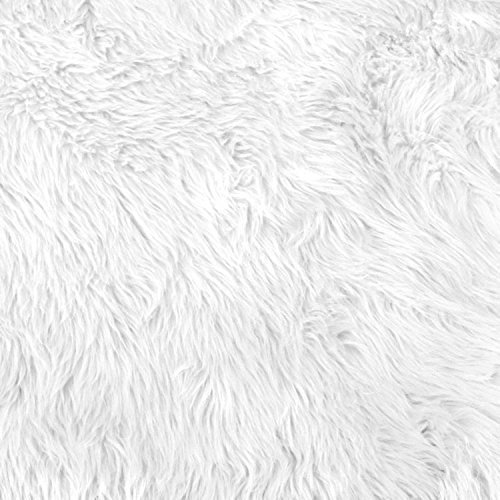 AMZ Faux Fake Shaggy Fur Fabric by the Yard, White