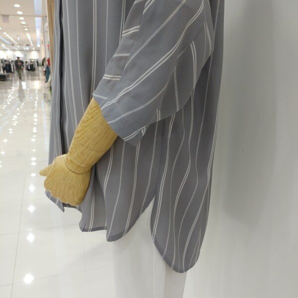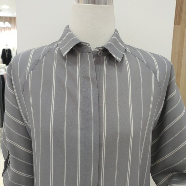이지한 클로징은 물론 쉬폰 소재인데도 착용시 거의 비추지 않아 편하게 착용하시기 좋고 롤업소매로도 변형이 가능합니다