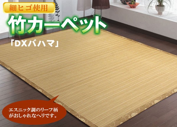 【商品名】 細ヒゴ使用 竹カーペット 『DXバハマ』 アイボリー 140×200cm(中材:ウレタン) 【ジャンル・特徴】 しなやかで柔らかい夏用ひんやり竹製ラグマット ■サイズ・色違い・関連商品■140×200cm アイボリー[当ページ]■180×220cm アイボリー■200×240cm アイボリー関連商品の検索結果一覧はこちら 孟宗竹の表面付近の目がぎっしり詰まった部分のみを使用しました。表面部分は汚れにくく、耐久性に優れ、熱伝導率が高いため、ひんやり感も抜群です。1.4mmの細ヒゴを使用しています。竹を細ヒゴにする事で硬いイメージのある竹がやわらかく、しなやかになります。またクッション性にこだわり中材にウレタンを使用しました。裏には不織布を貼っていますので、フローリングでのご使用に適しています。竹は他の木材と比べると、格段に成長が早く(3~5年で成竹)、持続的生産が可能な環境に優しいサスティナブルな素材です。■商品スペック【サイズ】約140×200cm【素材】表地=竹 裏地=不織布 中材=ウレタン6mm ヘリ=綿100%【原産国】中国製【特記事項】画像のカラー・サイズ・セット