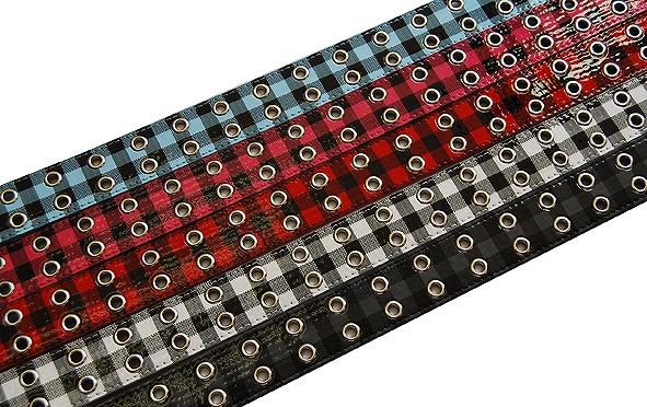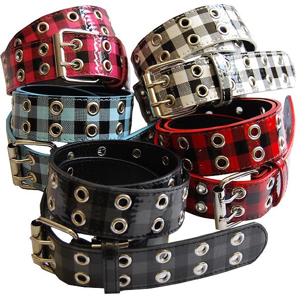 チェック柄の2連ハトメです。 ※サプライヤー直送品  ご注文後、当日~1営業日後の出荷となります【商品名】エナメルチェッカーベルト BLT-268 ブラック・レッド
