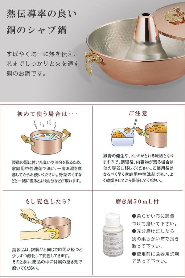 | 熱伝導率の良い銅のシャブ鍋。 |