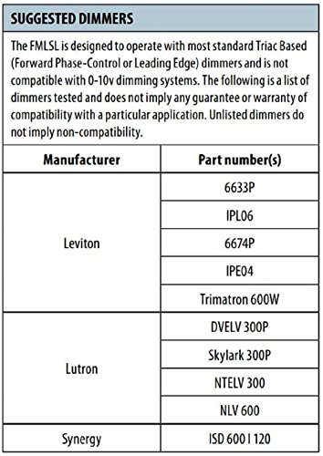 Lithonia Lighting all white fixture works with most standard dimmers from Leviton and Lutron allowing the right level of light output and is easily installed