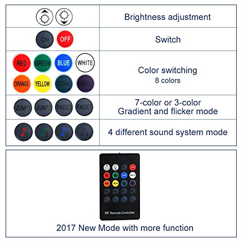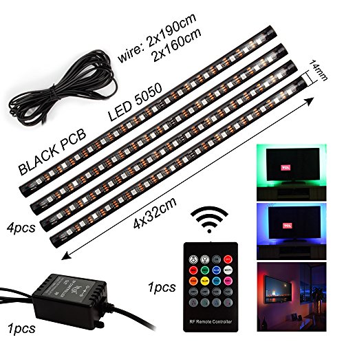 Package included: 4 pcs 32cm (1 ft) 5050 strip light 2 pcs USB plug cable 190cm (5.7ft) 2 pcs USB plug cable 160cm (4.8ft) 1 pc remote controller 0
