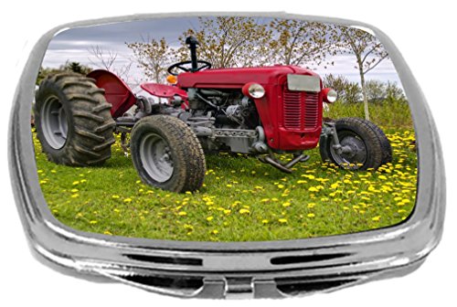 Rikki Knight Compact Mirror, Red Farm Tractor on Yellow Field, 3 Ounce