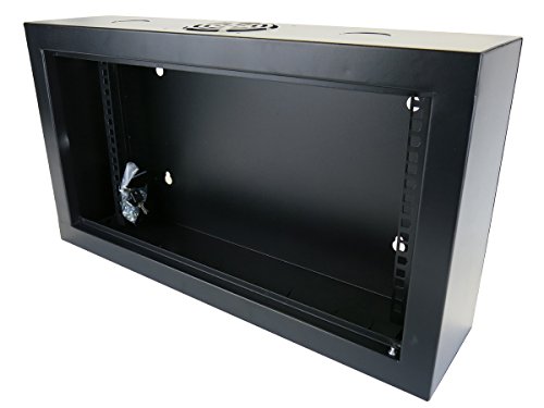 19" 6U wall mount cabinet enclosure designed for network closets and education environments, where equipment is required to be organized and secure. Ventilated panel for increased airflow. Interior vertical posts have square holes for included cage nuts and mounting screws. Shipped fully assembled for quick installation.Feature