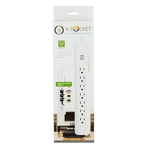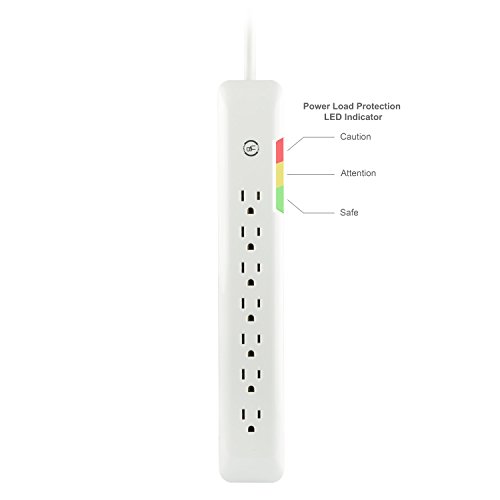 Yubi Power 7 AC Outlet Power Strip with 540 Joules Surge Protection & New V-Socket Loading Status Color Changing Display and 4 Foot Cord