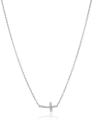 -. Title : Sterling Silver Cubic Zirconia Side Cross Pendant Necklace,16"+ 2" Extender
