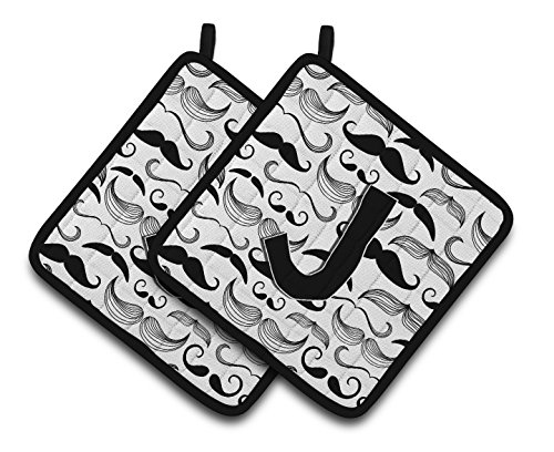 Caroline's Treasures Letter J Moustache Initial Pair of Pot Holders CJ2009-JPTHD, 7.5HX7.5W, Multicolor