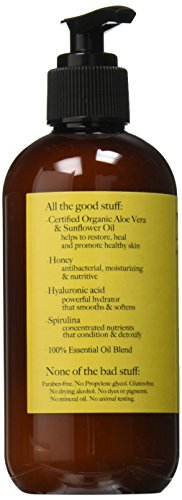 - All the good stuff like certified organic aloe & sunflower oil, green & white tea, honey, hyaluronic acid, and spirulina.