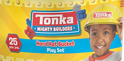 -. Binding : Toy -. Brand : Tonka -. EAN : 0609631734300 -. Feature : Helps children learn colors, shapes and enhance motor skills. / 23 stackable block pieces in red, yellow and blue. / Hard hat doubles as a lid for the bucket and hat. / Bucket that can be flipped over and used as a building surface. / Bucket measures 9. 25" l x 8. 5" w x 11" h. -. IsAdultProduct : 0 -. Label : Tonka -. Manufacturer : Tonka -. ProductGroup : Toy -. ProductTypeName : TOYS_AND_GAMES -. Publisher : Tonka -. Studio : Tonka -. Title : Tonka 25-Piece Colorful Mighty Builders Blocks and Hard Hat Bucket Storage Play Set -. UPC : 609631734300