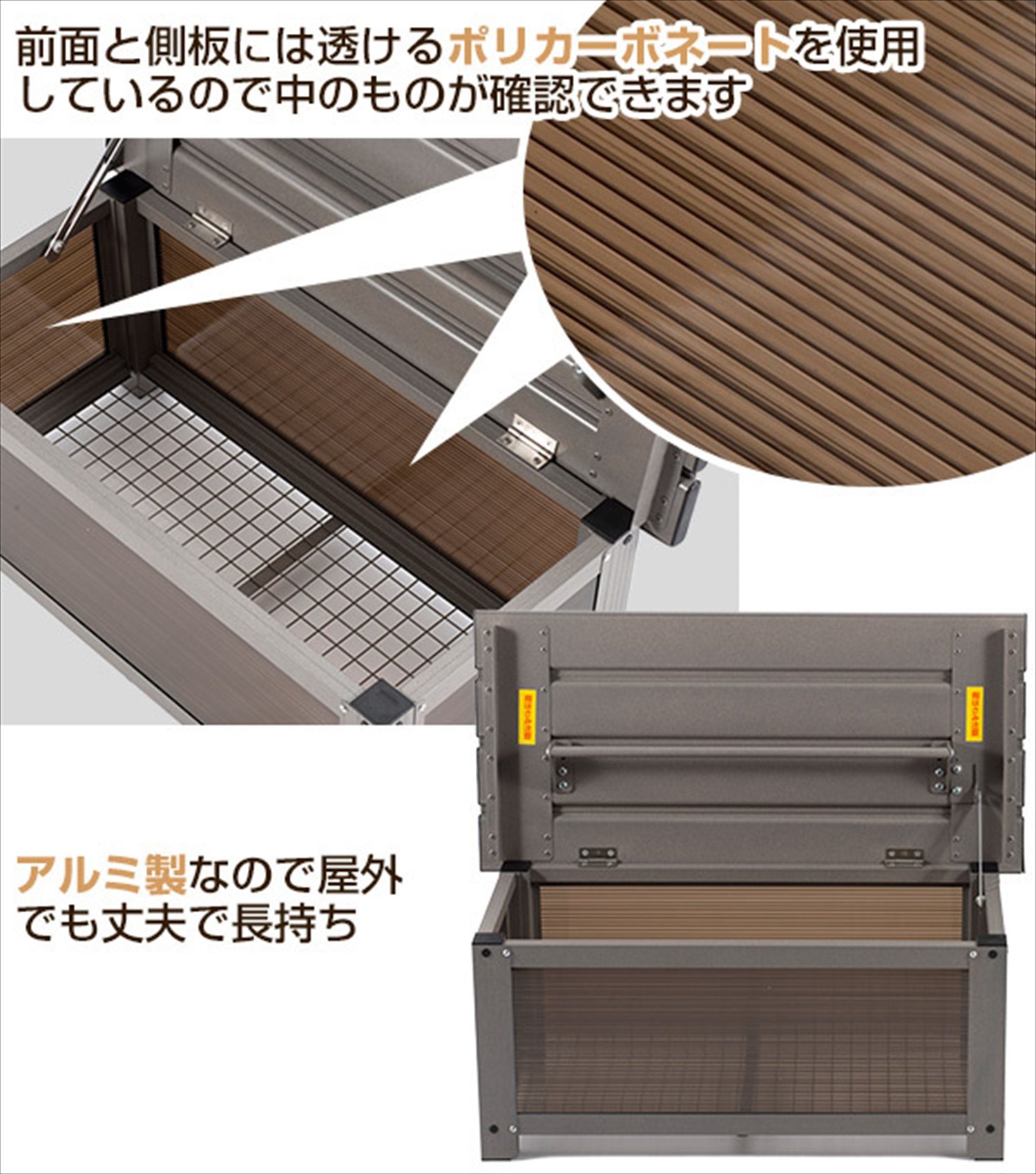 ● Because it is made of aluminum it is strong and long lasting even outdoors