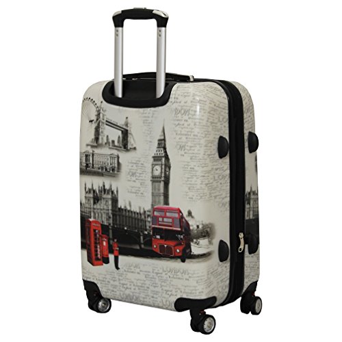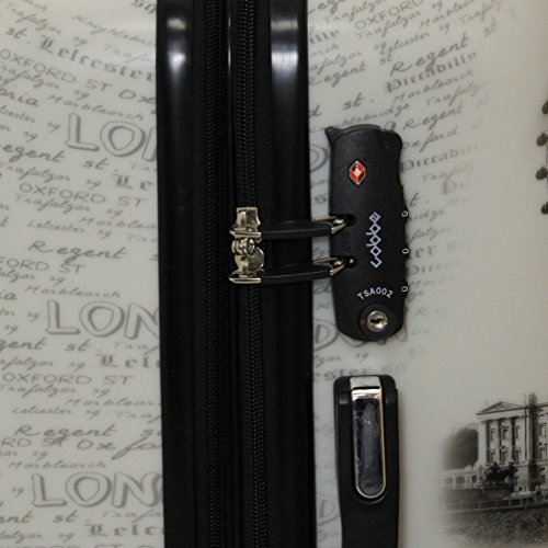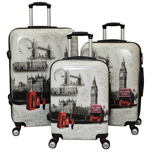 Studio : S E Publisher : S E Product Description A perfect getaway deserves a perfect suitcase for your stuff, and we just found the best and fitting item for you with this all new London Travel destination desin. A must have. Set includes: 3 Suitcases; Carry-on measures 21"H x 13"W x 9"D (including wheels), 6.8 pounds. Medium upright measures 25"H x 16"W x 10"D (including wheels), 8.6 pounds. Large upright measures 29"H x 18"W x 12"D (including wheels), 9.8 pounds. Features: Expandable, Locking, Multi-Compartment, Spinner, Fashion, Hardshell and Durable | Materials: Polycarbonate 0