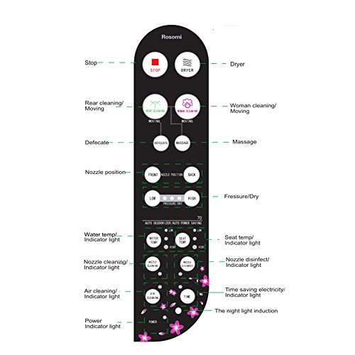 Stainless Steel Nozzle: Provides warm water cleaning for the front and rear, with moving function to adjust the cleaning position and massage function. The anti-bacterial nozzle has self-cleaning and disinfection function, to protect your body from bacteria and disease.
