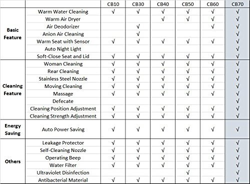 Adjustable Water Pressure (3 levels), Adjustable Water & Air Temperature (3 levels), Adjustable Seat Temperature (3 levels)