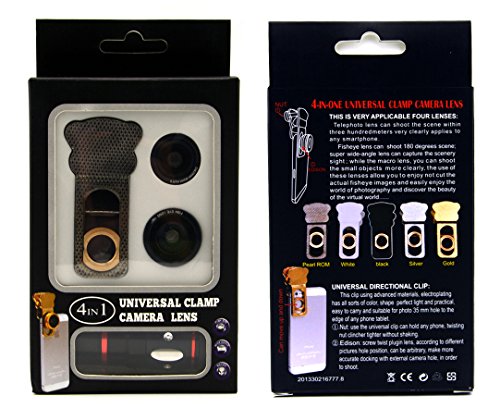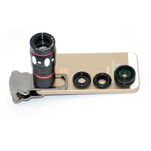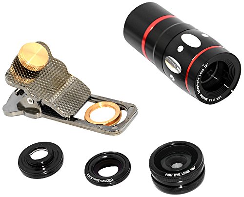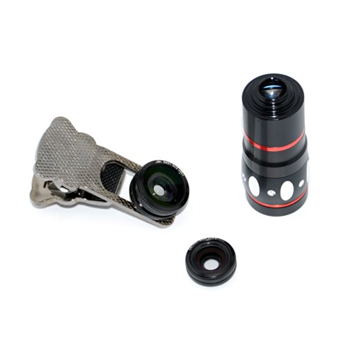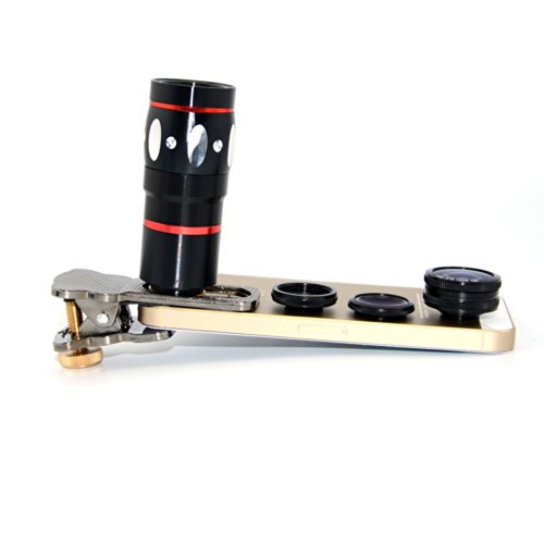 Apexel Universal Sliding Clamp 4-in-1 Fish Eye, Wide Angle & Macro Lens,10X Telescope Lens for iPhone Samsung HTC Sony Phones & Tablets- Black