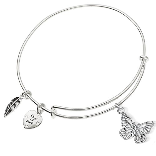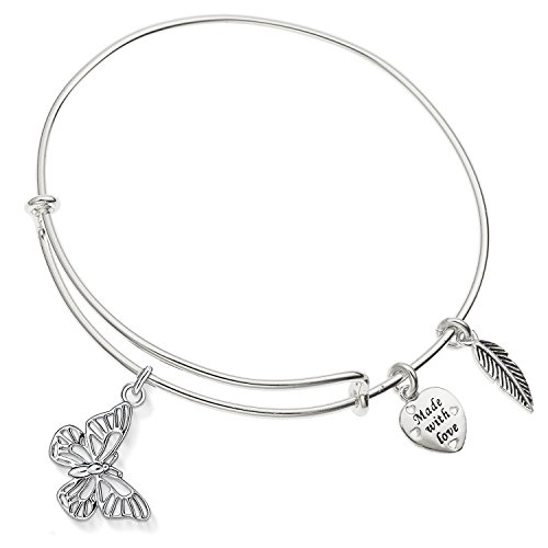 Enni of York butterfly Expandable Shiny-Silver Tone Bangle Bracelet