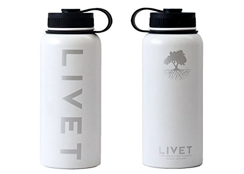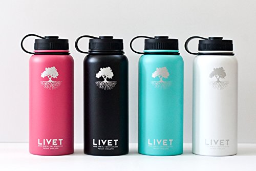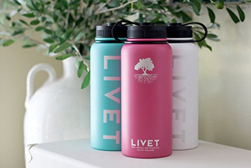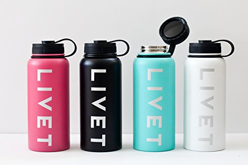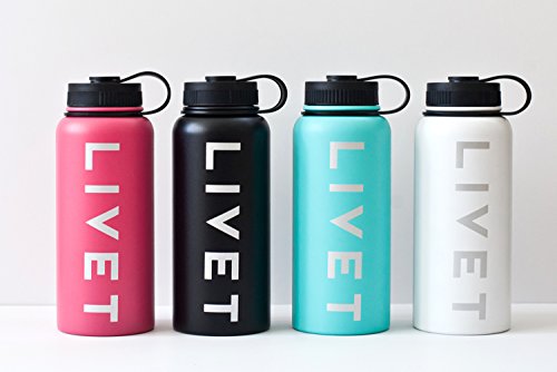 Stainless Steel Powder Coated BPA Free Water Bottle by Livet 32 oz