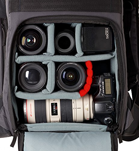 Schutzender Kamera-und Laptop Rucksack bietet Platz fur eine DSLR wie zum Beispiel eine 5D mark II mit angesetztem 70-200/2.8 Objektiv