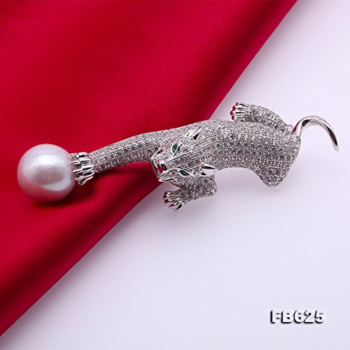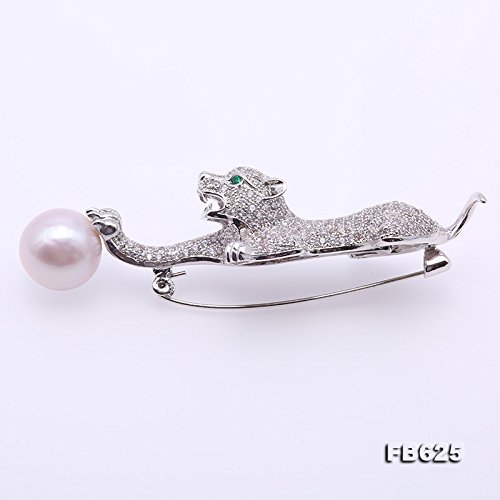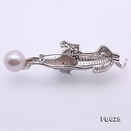 Lovely white pearl brooch with leopard design