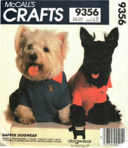 -. Title : Mccalls 9356 Dapper Dog Wear Sewing Pattern Raincoat and Hood, Sweatshirt, T-shirt, Tuxedo or Lace Collar Xs, S, M