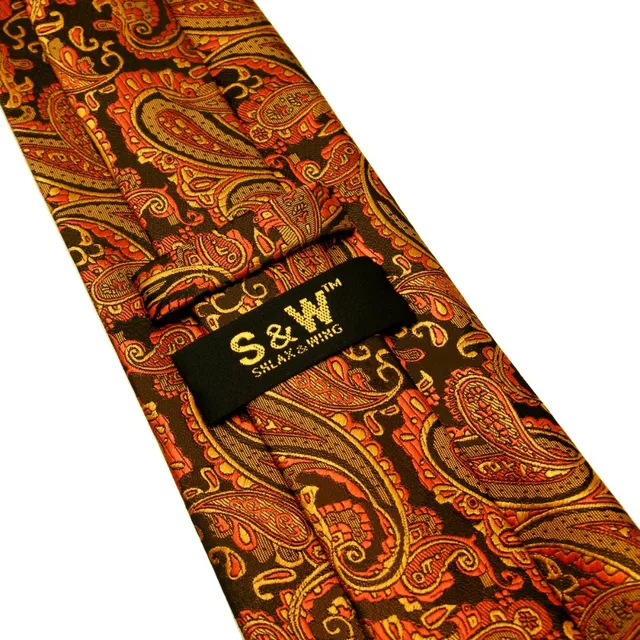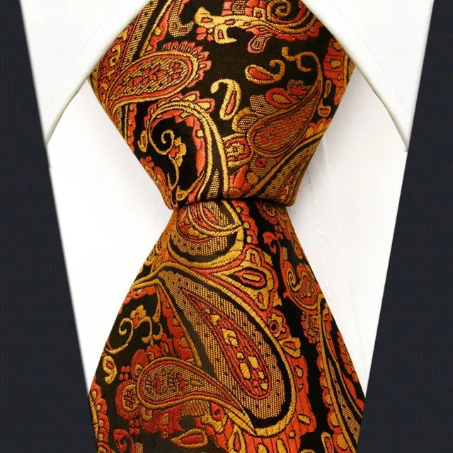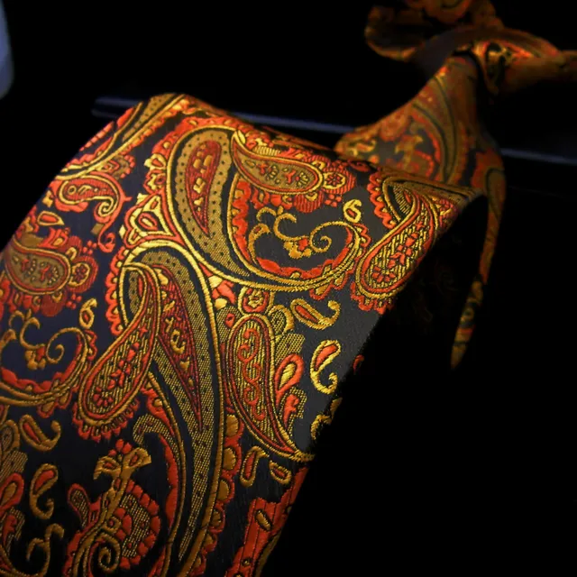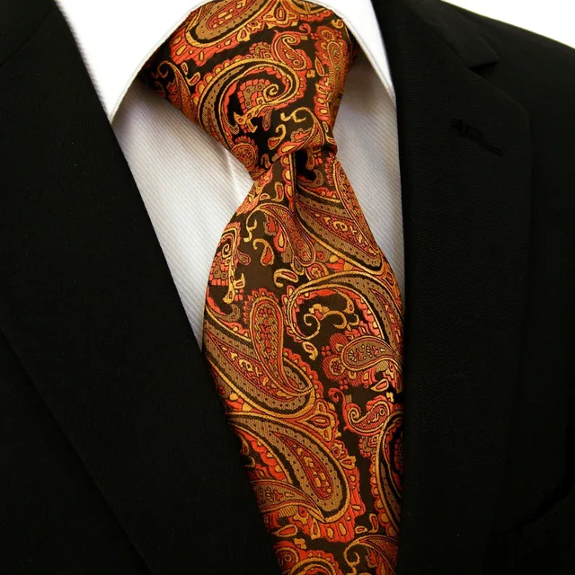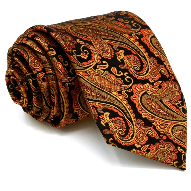 | [해외]P21 여분의 긴 사이즈 페이즐리 orange 블랙 남성 넥타이 일치하는 손수건 100% 실크 자카드 짠 브랜드 새로운 패션 |