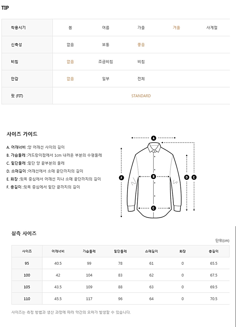 겨울철 다양한 이너 및 팬츠와 코디하기 용이한 상품