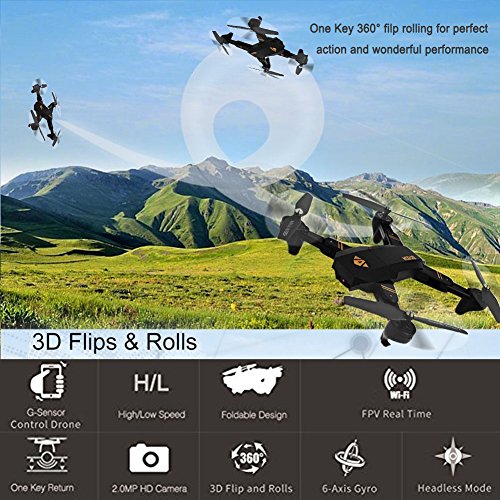 Studio : CeShop Publisher : CeShop Binding : Toy Product Description Specifications: Function: Settable Track Flight/360-degree Rolling Over/Headless Mode/LED Lights/One Key Automatic Return/Altitude Hold/FPV/VR/Mode/Gravity sensing mode/Speed Mode/A key to take off and land Built-in Gyro: Yes WIFI Control :Yes Night Flight: Yes Remote Control: 2.4GHz Double Wireless Remote Control Channel: 4-Channels Mode: Mode 2 (Left Hand Throttle) Lens pixels: 2MP Battery: 3.7V 900mAh Li-ion battery ( included ) Flying time: About 10-12mins Charging time: About 100mins ( by USB) Controlling distance: 50-60 meters Remote control battery: 3 x 1.5AA batteries (excluded) Size: 18*13*6cm (Shaft folding), 32.5*32.5*6cm ( Shaft unfolded) Package size :24*22*11cm Package Weight : 0.55 kg Product Weight :0.158 kg