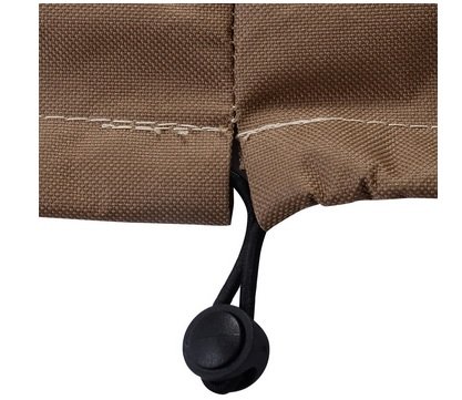 Large, zippered front pocket for storage, Air vents reduce condensation and lessen ballooning in winds, Adjustable elastic hem cord with a toggle for a tight and custom fit
