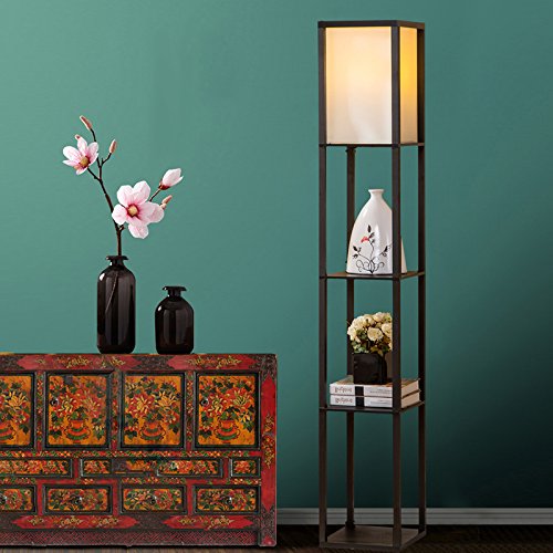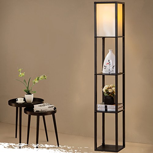 ELECWISH USIL10082 Shelf Floor Lamp with Linen Shade, UL Listed, Wooden Frame, Switch On/Off, Etagere Organizer Shelf, 63" H, Black