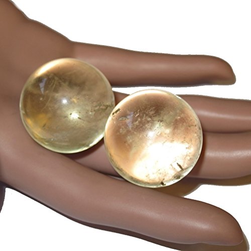 Satin Crystals Citrine Ball 1" Premium Pair of Natural Very Clear Light Yellow Spheres Money Meditation Gemstones P02