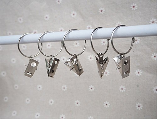 Product Description Double hole metal curtain clip with ring Pack of 30 Ring inner diameter: 28mm, outside dia: 32mm; Clip size: 23*11*14mm Easy and convenient to use 0