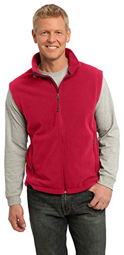 Product Description Ready for layering, this super soft, midweight fleece vest offers great warmth at a great price. 13.8-ounce, 100% polyester Twill-taped neck Reverse coil zipper Chin guard Bungee cord zipper pulls Tricot-lined armholes Front zippered pockets Interior pockets Open hem with drawcord and toggles for adjustability 0
