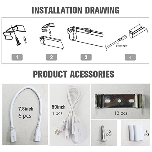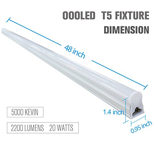LED T5 Integrated Single Fixture 4FT,20W 2200lm 5000K Daylight,Utility led Shop Light, LED Ceiling light and Under Cabinet Light, Corded electric with built-in ON/OFF switch 5000K