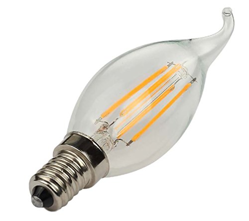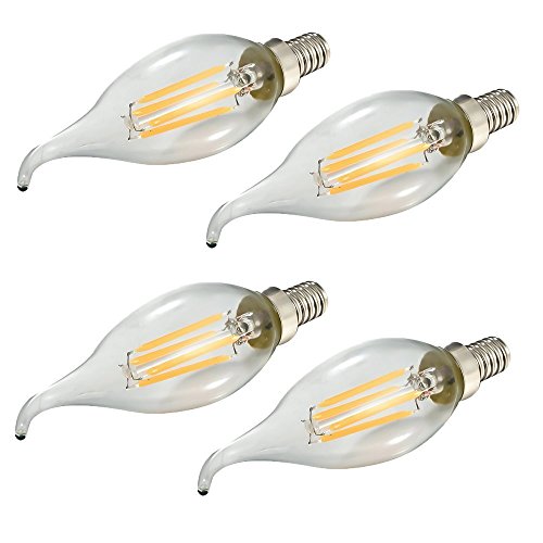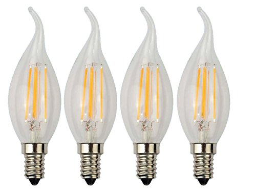 SUNWO LED B11 4W LED Filament Bulb, Flame Tip, Dimmable, E12 Candelabra Base LED Bulb, 2700K Warm White, Equivalent To 40W Incandescent Bulbs ( 4 Pack )