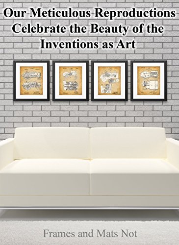 Bring a little whimsy to your household. These four prints show patents filed between 1916 and 1942. The original patent artwork has been reinterpreted by award winning artist Norm Lanier.