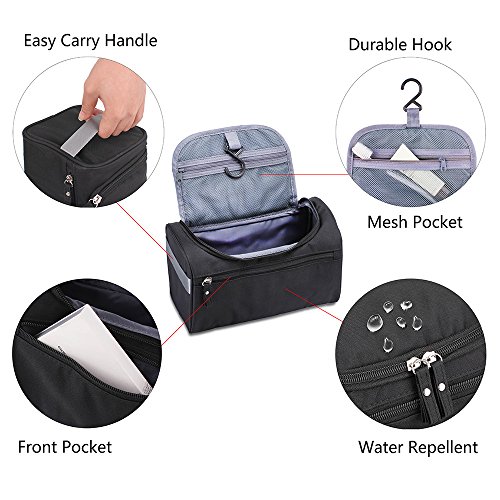Hanging Travel Toiletry Bag, Waterproof Shower Bag with Hook and Handle, Portable Shaving Dopp Kit Bags by Lucky Rain, Black