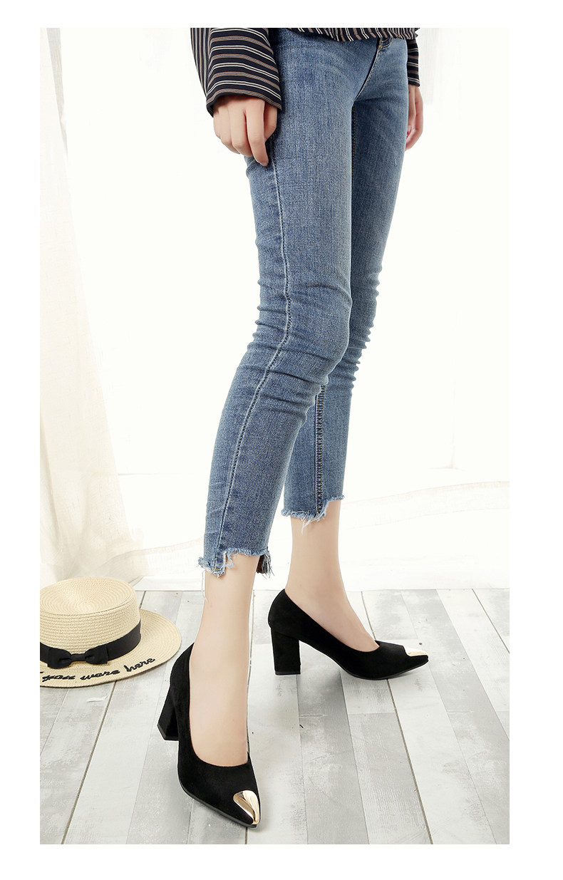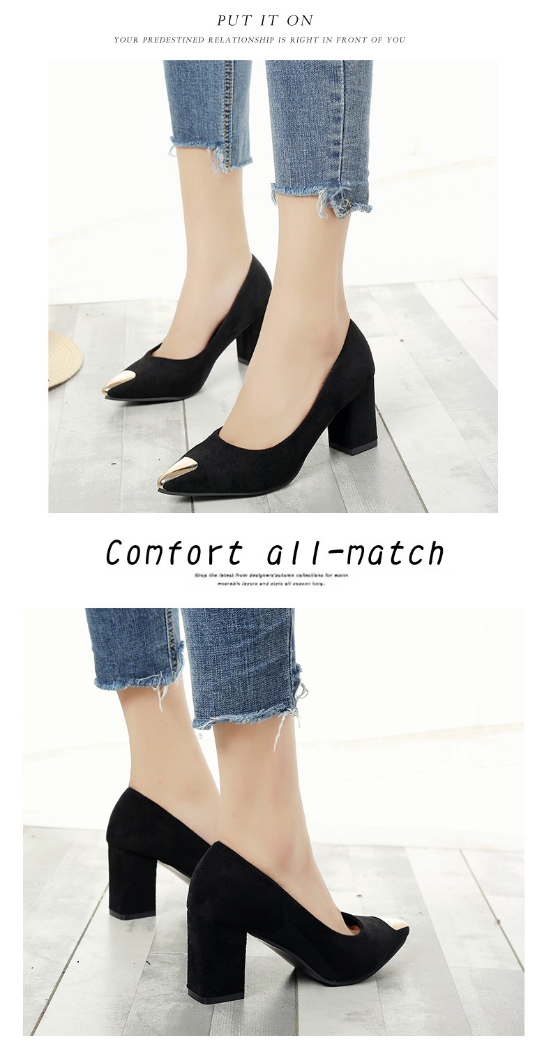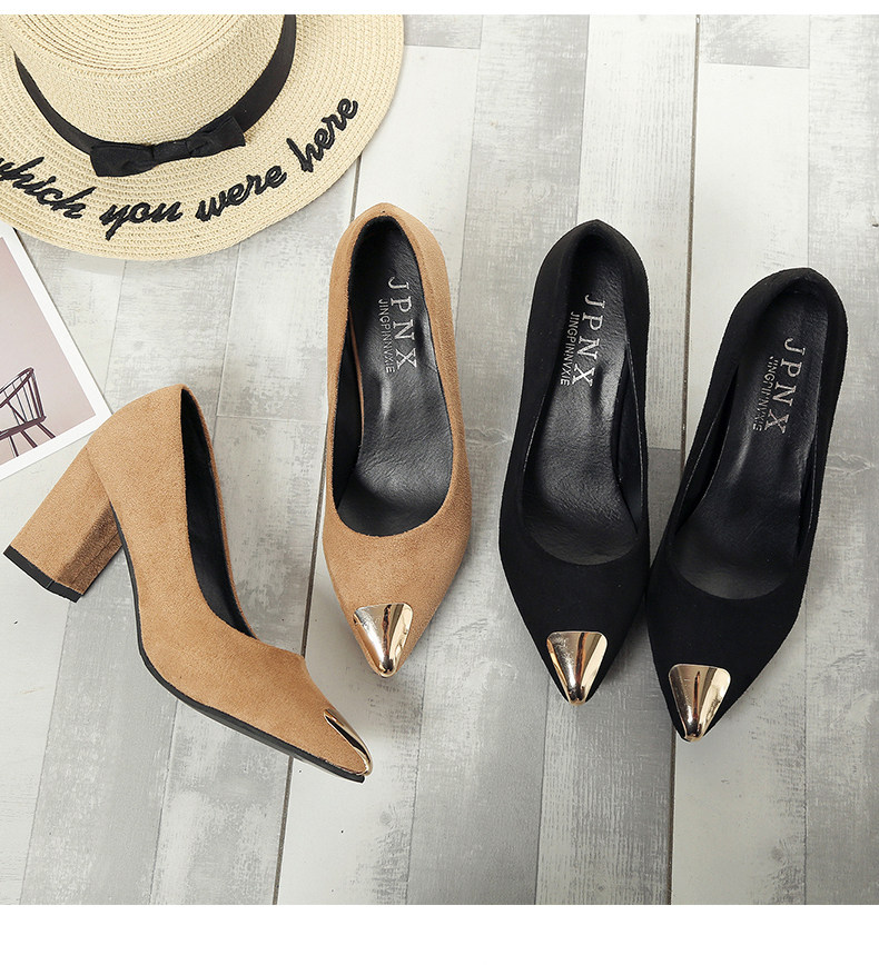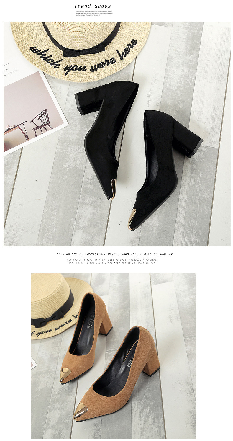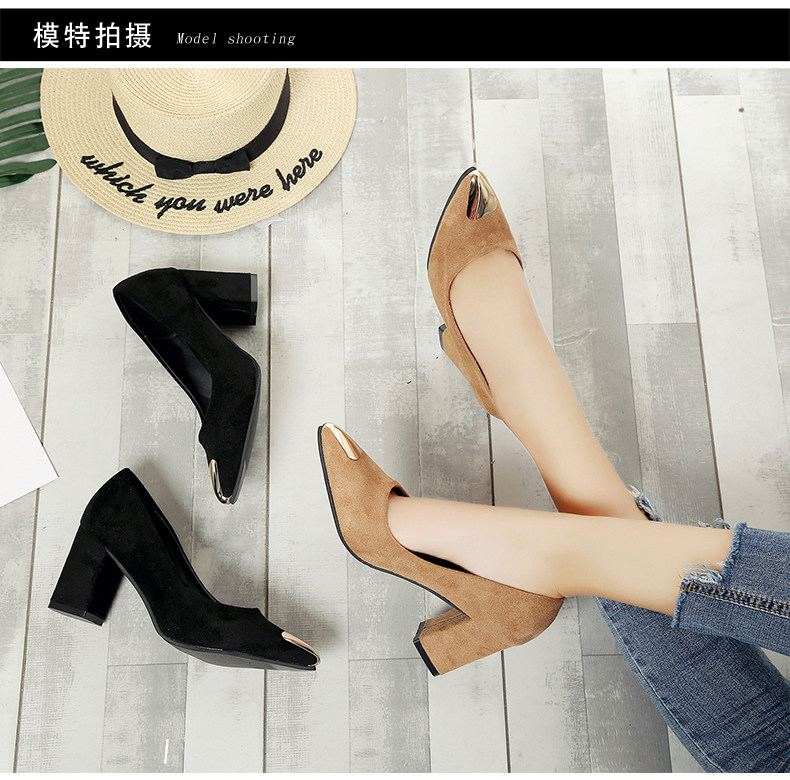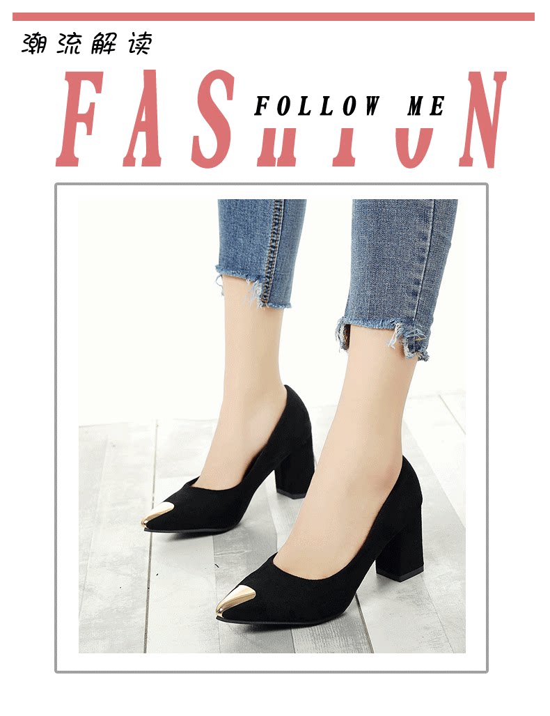 韩版夏秋季新款小清新高跟鞋粗跟尖头休闲鞋百搭工作简约女鞋