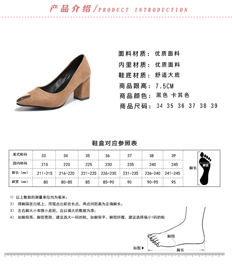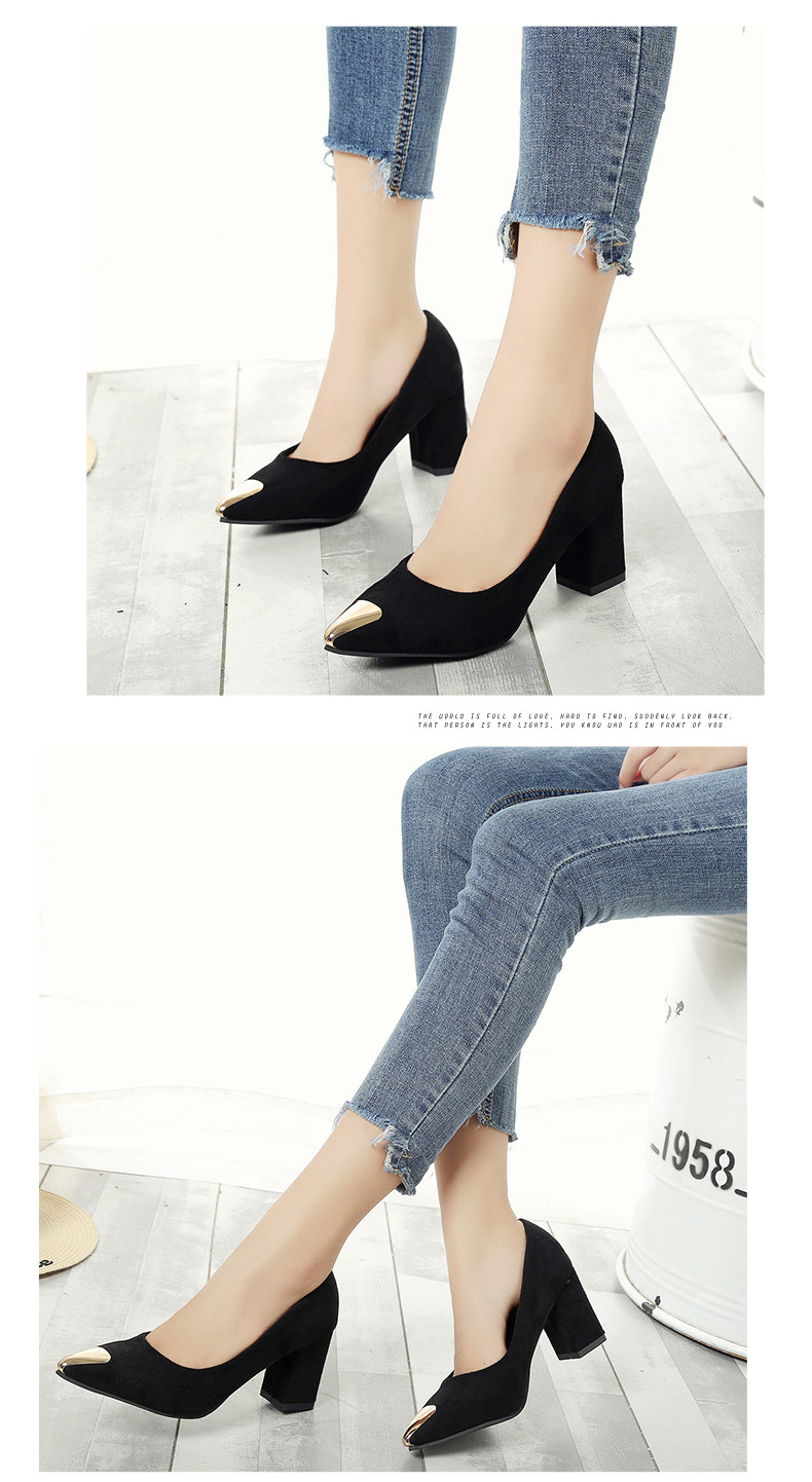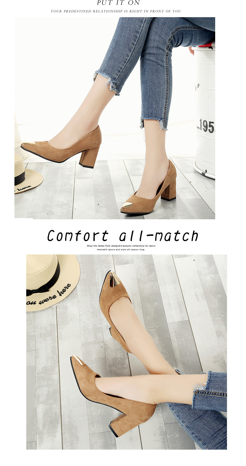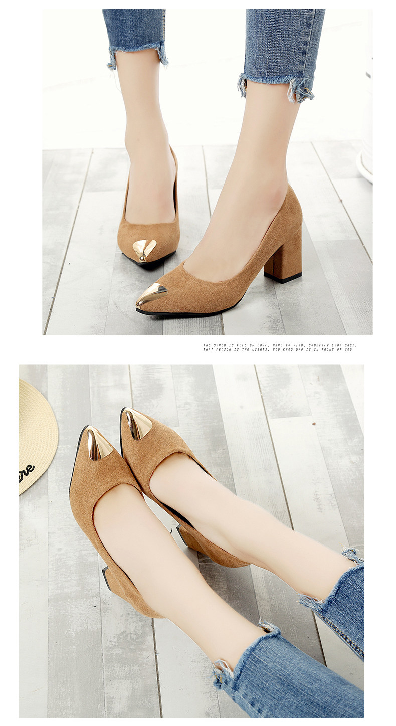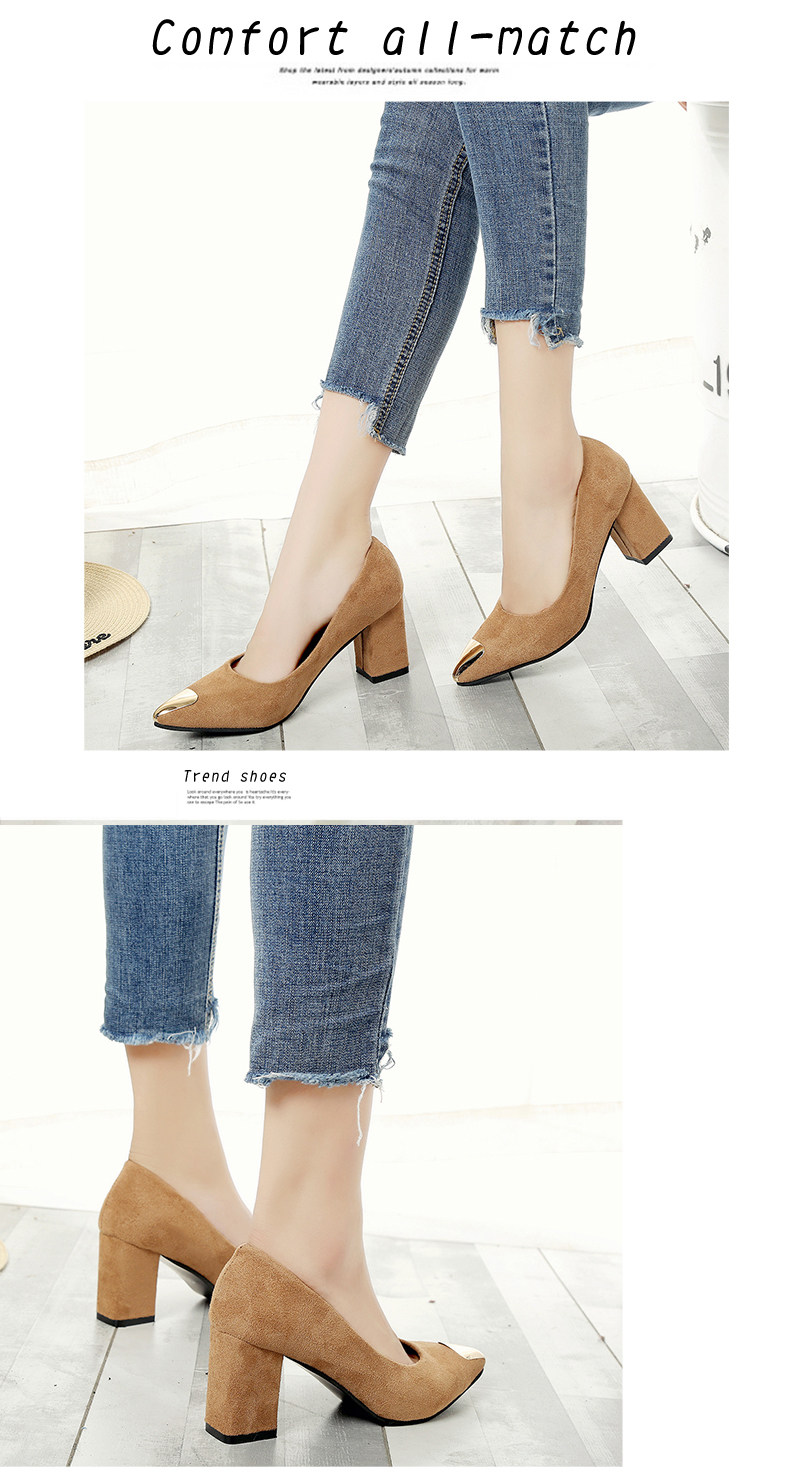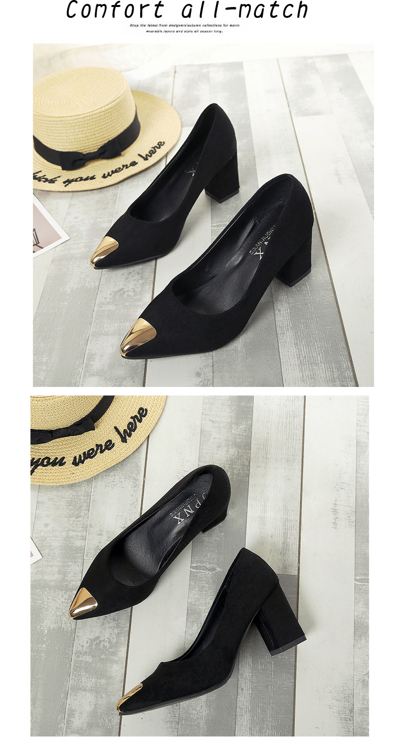 韩版夏秋季新款小清新高跟鞋粗跟尖头休闲鞋百搭工作简约女鞋