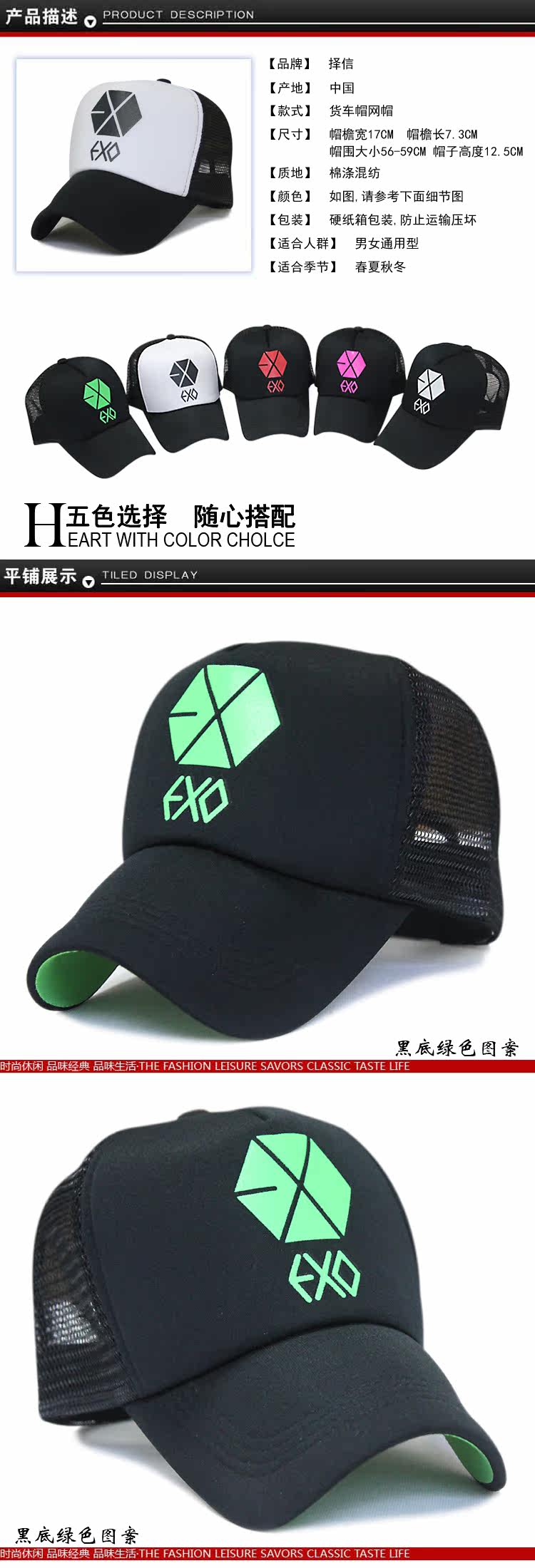 Dimensions: 17 cm wide brim, brim 7.3 cm long, 12.5 cm high hat, cap size 56--59 cm circumference